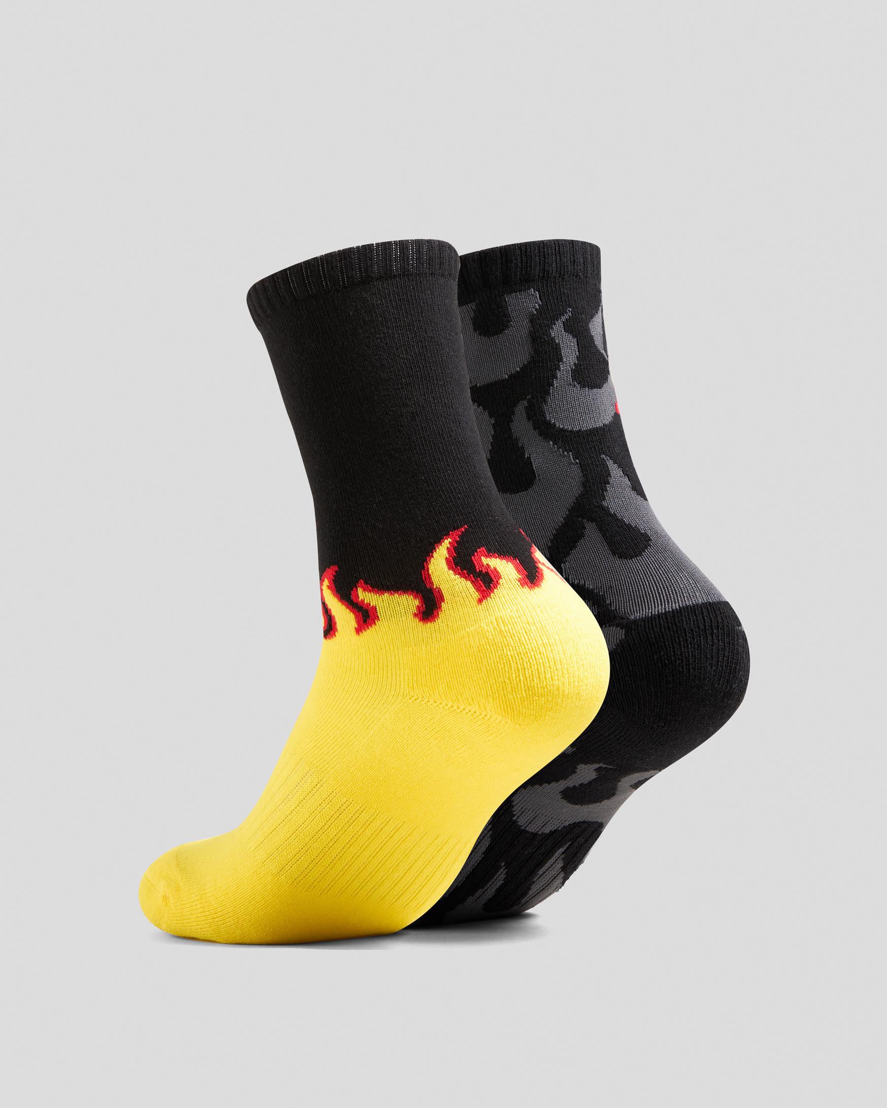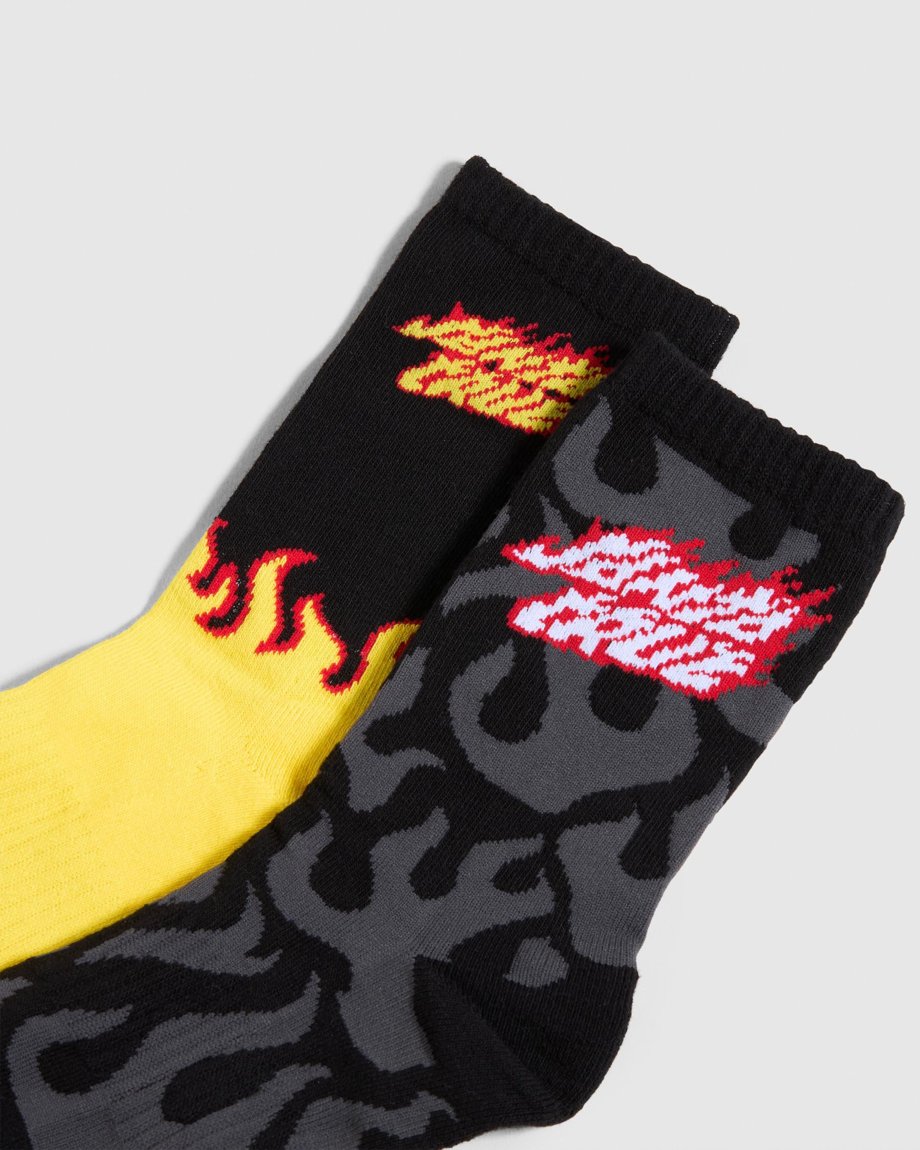 Flaming Stack Crew Sock 2 Pack keeps your feet comfy and stylish with a stretchy blend of polyester, cotton, and elastane. The crew cut hits just right for everyday wear, while the bold logo print adds a bit of personality to your sock drawer. Built with stretch fabric that moves with you, these socks stay put whether you're catching waves or just cruising around. Two pairs means you've always got a fresh pair ready to go.