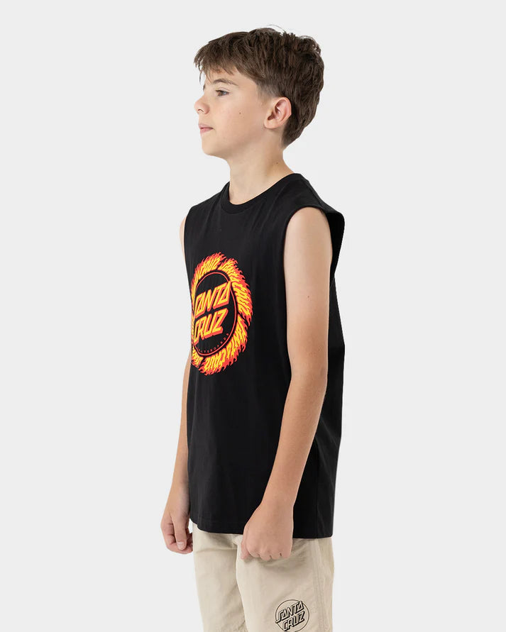 Throw on this Santa Cruz muscle tee and channel some classic skate vibes. The Flame Ringed Dot artwork hits hard across the chest—bold, iconic, and unmistakably Santa Cruz. Cut sleeveless for maximum arm freedom, it's perfect for warm days at the beach or just keeping it casual. Built for comfort and style, this tee lets your attitude do the talking.