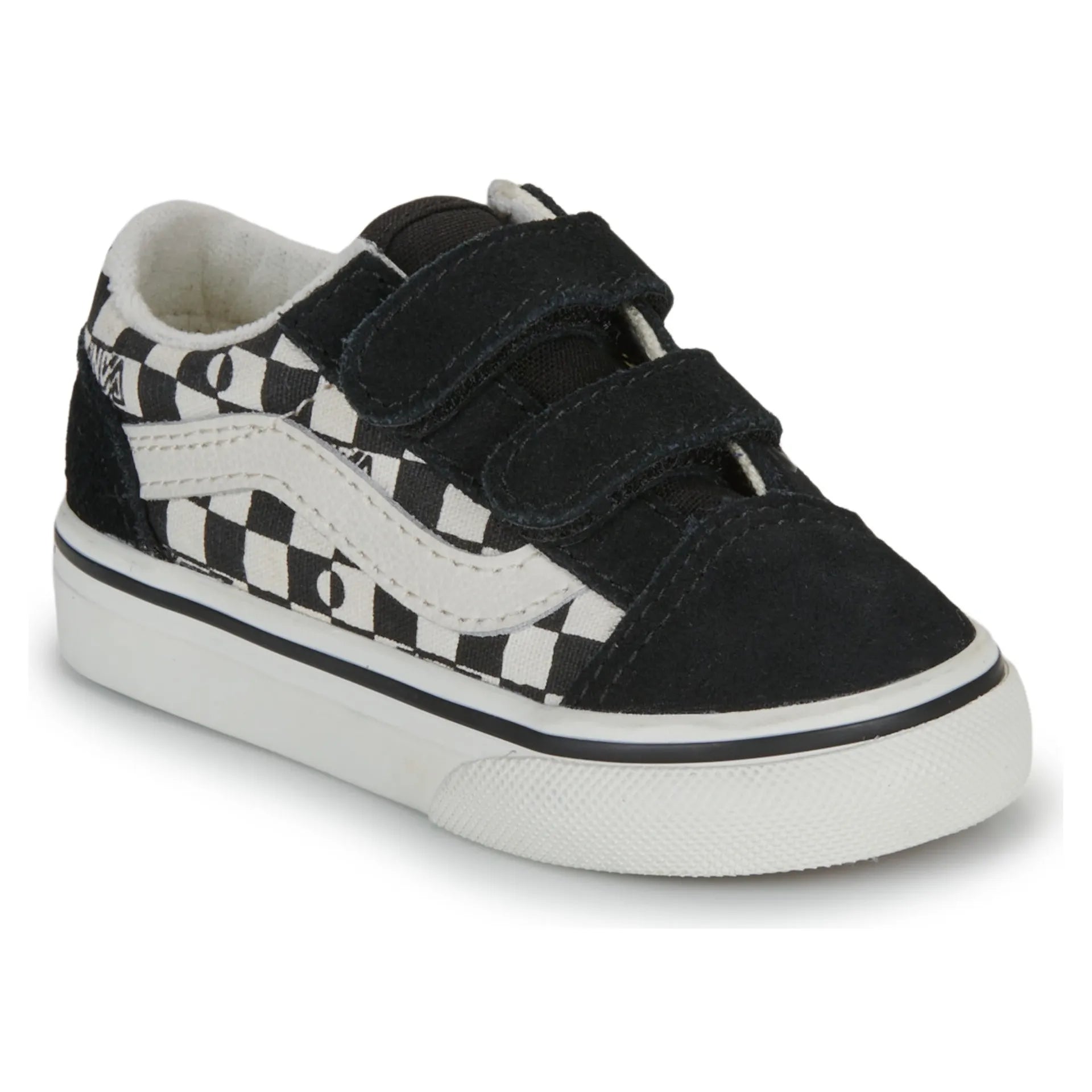 The Old Skool V Geo Check brings iconic Vans style to little feet with a playful geometric pattern that kids love. Designed for toddlers, these shoes feature a comfortable fit that keeps up with active play all day long. The classic silhouette and eye-catching check design make them a cool choice for any outfit. Perfect for everyday adventures, from the playground to casual outings.