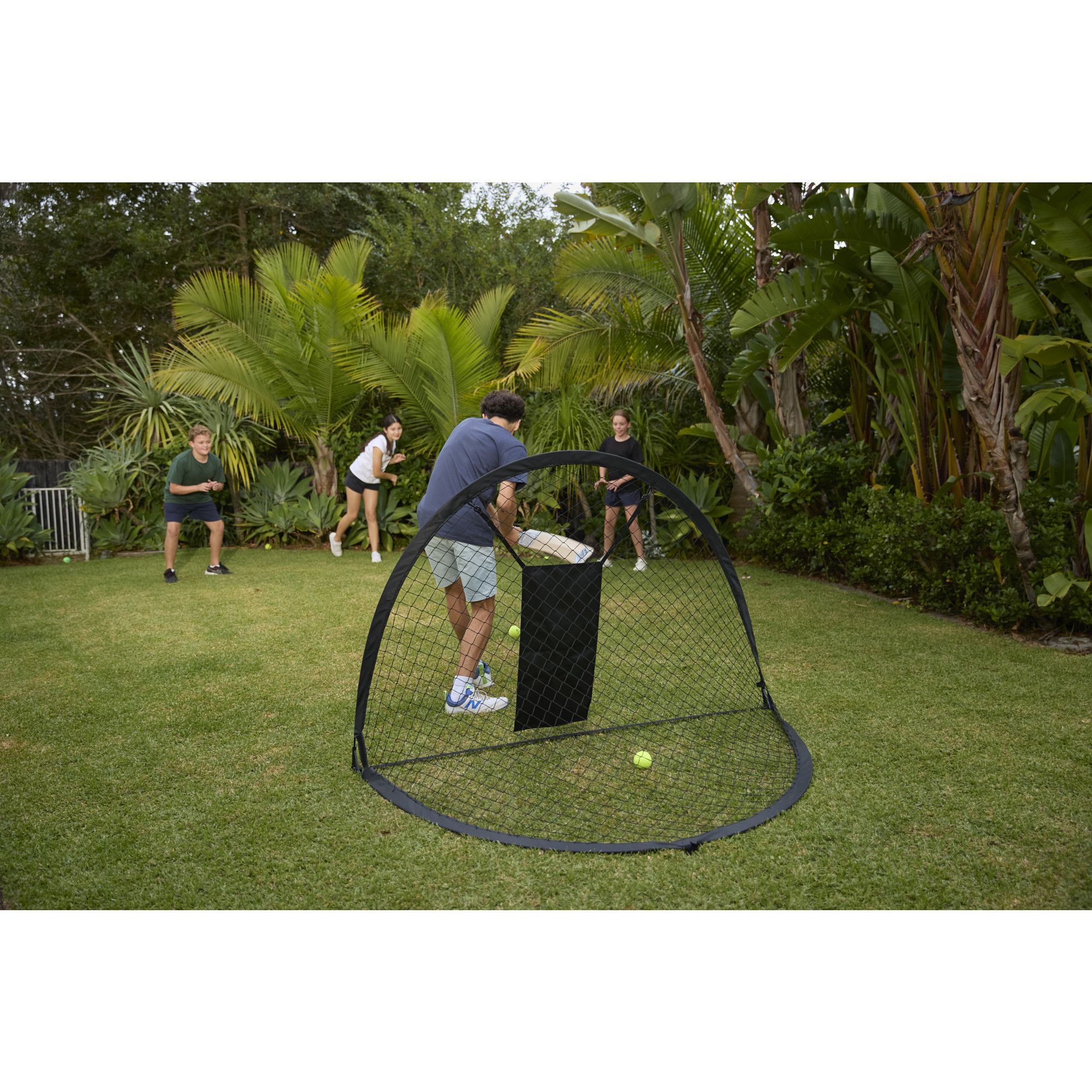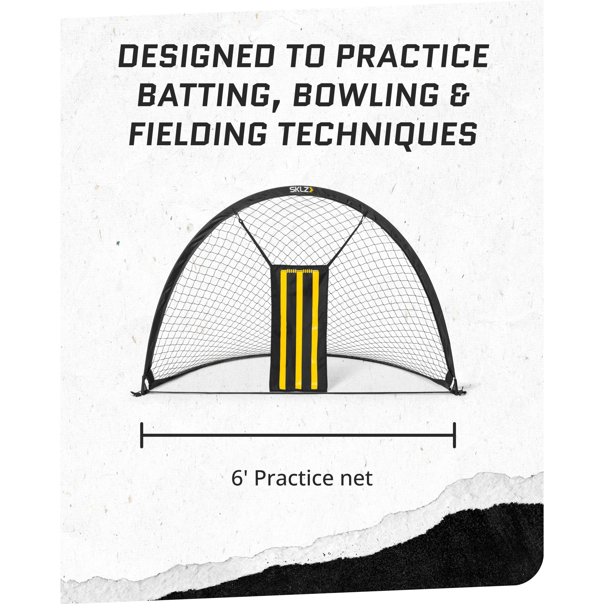 The Cricket Pop-Up Stumps Net is designed to elevate your cricket training sessions by addressing several common practice issues. This 6' (182cm) practice net acts as an effective backstop, preventing balls from running away and eliminating the need for constant retrieval, thus saving valuable practice time and energy. Its quick assembly and take-down, thanks to tent technology, make setup intuitive and hassle-free. Ideal for use in limited practice spaces such as backyards or local parks, the spacious cricket net provides a designated area for batting and bowling practice. Constructed with durable, weather-resistant polyester netting and sturdy fiberglass rods, it withstands various weather conditions and remains stable even under the impact of powerful hits. The removable wicket target simulates a realistic wicket, offering consistent and instant visual feedback to improve bowling accuracy. The versatile design supports multiple training activities, including batting, bowling and fielding practice, allowing for comprehensive skill development. Its portable and lightweight nature ensures easy transport and storage, enabling practice in different locations without hassle. Suitable for solo practice, the Cricket Pop-Up Stumps Net provides a realistic and effective training environment, making it an indispensable tool for cricket enthusiasts of all levels.