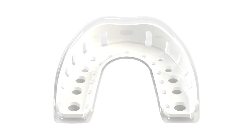 The outer layer is made from the same thermoplastic material that laboratory mouthguards use and designed to follow the contour of NCore®. This material offers impact absorption for further protection and gives a comfortable cushioning.