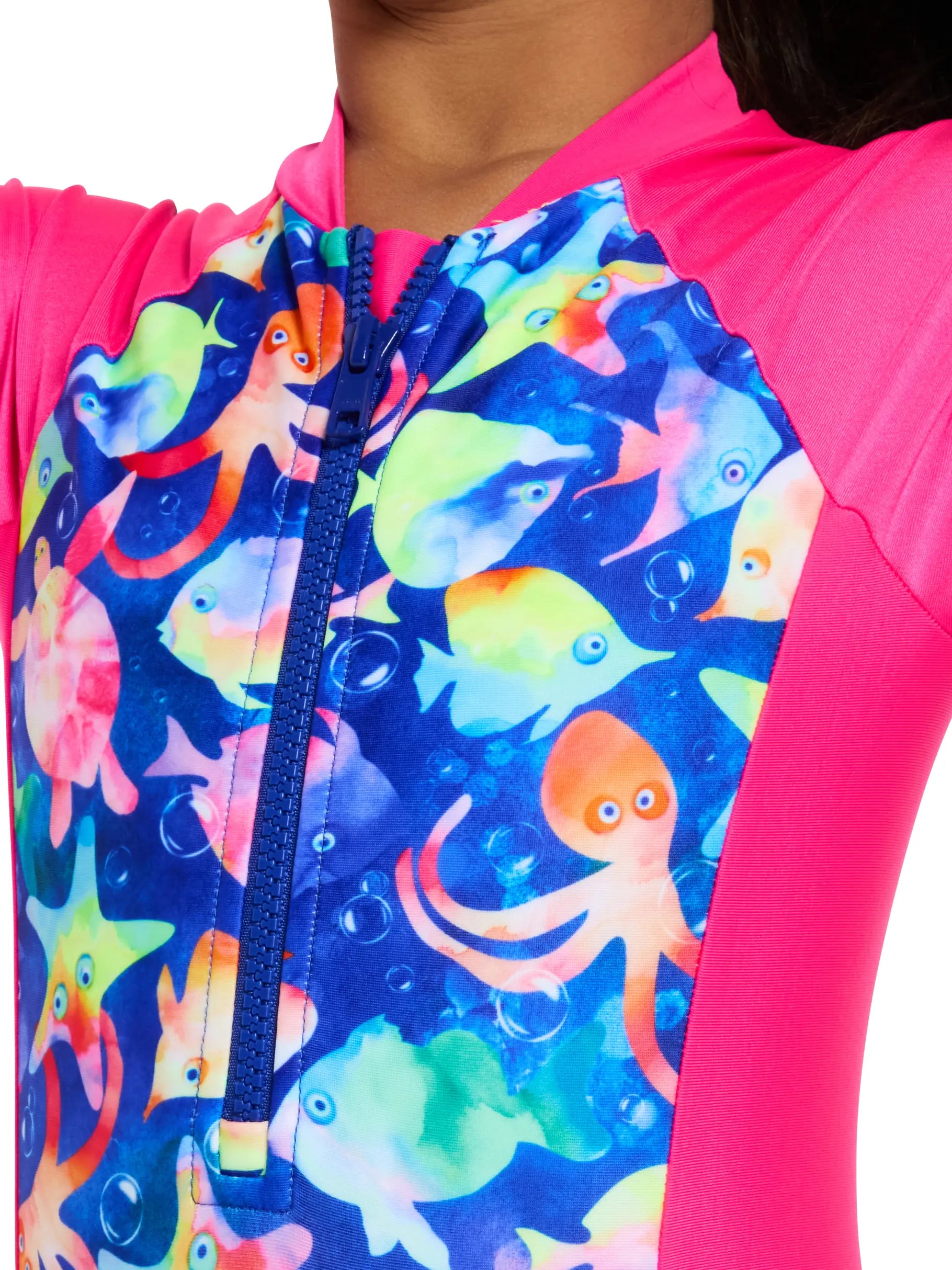 Have fun in the sun in the Zoggs Bubbles Paddle Suit. This vibrant pink paddle suit features Zoggs bright and beautiful sea life print.