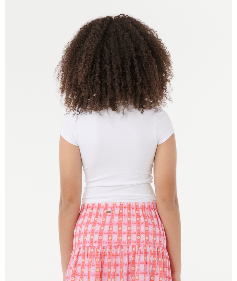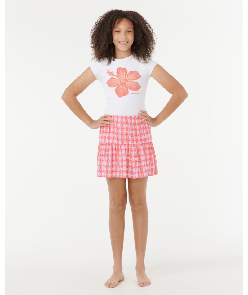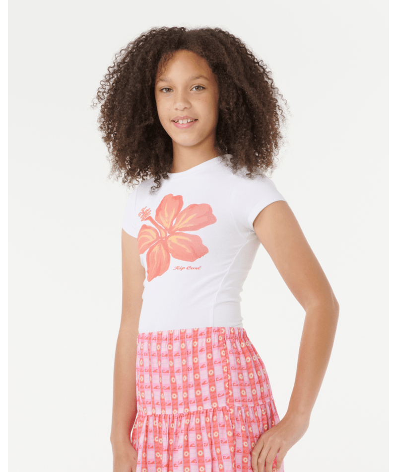 The Hibiscus Tee delivers a snug, surf-sweet silhouette with a fitted shape and soft stretch interlock cotton. Finished with a front print and woven label—it’s the go-to for post-surf hangs, skate park laps, or heading down to watch the swell roll in.