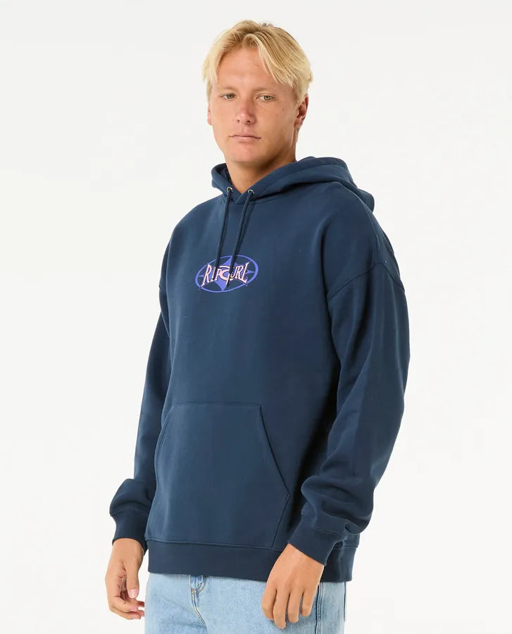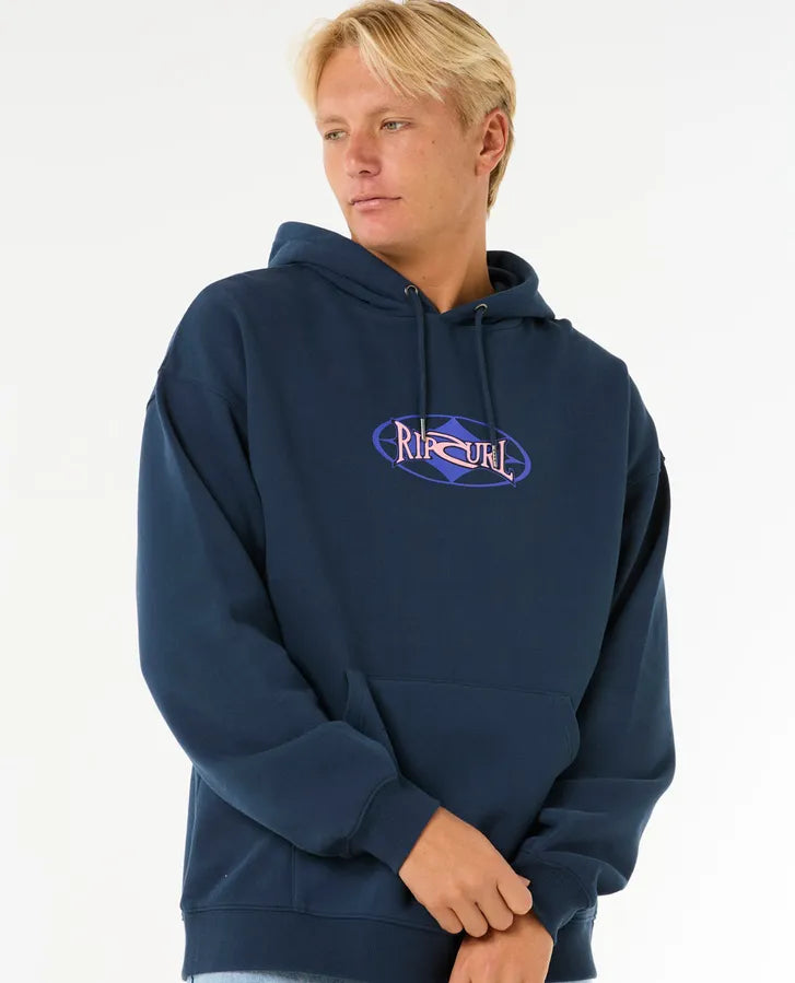 The Heritage Oval Hood blends surf style with cozy comfort, featuring cotton-poly fleece, a loose fit, and a kanga pocket. Its screen print logo and woven label deliver timeless coastal vibes.