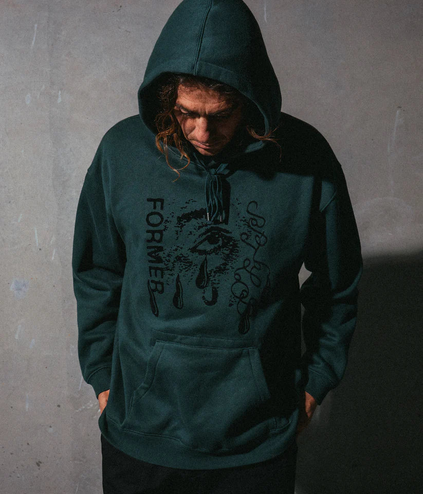 Designed in a premium 320GSM cotton faced brushed fleece with 50% cotton 50% polyester for warmth and comfort, and delivered in our standard FORMER hood fit. Featuring drawcord closure, front graphic flocking print, franchise F tonal embroidery on hood, front pocket, and FORMER branded metal aglets.