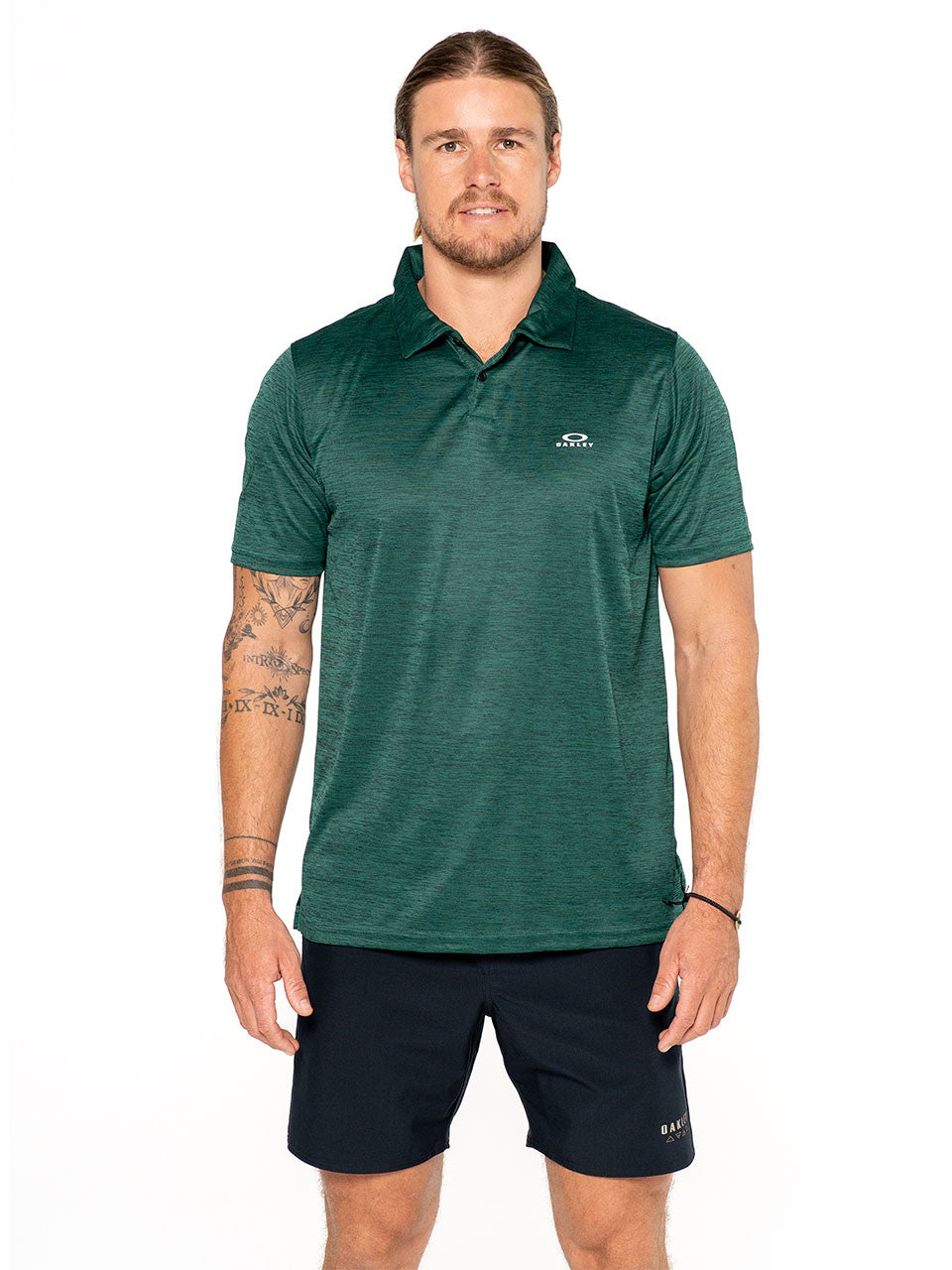 Shorts sleeve OHydrolix polo with chest logo and moisture wicking technology to enhance comfort and breathability.