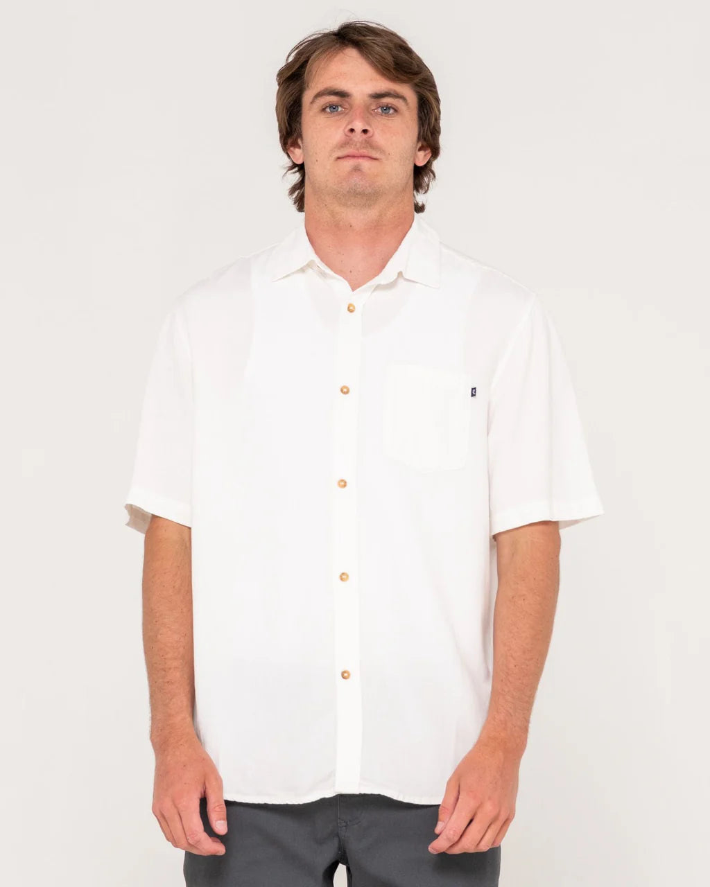 Effortless style meets comfort in this relaxed short-sleeve shirt. Crafted from a breathable rayon and linen blend with a subtle silicon wash finish, it's got that perfectly worn-in vibe. The regular fit sits just right, featuring a classic chest pocket and button-down front. Perfect for throwing on after a session or keeping it casual all day.