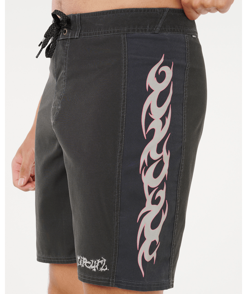 Bring bold style to the beach with the Mirage Sideways 19" Boardshort. Made from Mirage Core Recycled Fabric, these boardshorts feature a mid fit with a 19" outseam, perfect for active days on the water. The pigment print with a heavy enzyme wash gives them a vintage look, while the engineered side panels ensure flexibility and comfort. Featuring a back pocket with velcro and hydrophobic quick-dry fabric, these boardshorts are both practical and stylish for any beach day.