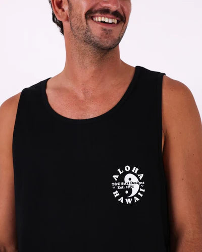 Back To Basixs Singlet A timeless wardrobe essential that captures the spirit of island living. This relaxed-fit singlet features premium soft cotton that feels effortless against your skin, paired with subtle Aloha Hawaii artwork on the chest—a nod to classic T&C heritage. Perfect for lazy beach days, morning surfs, or simply staying cool when the sun's high. No fuss, just pure comfort and understated style.