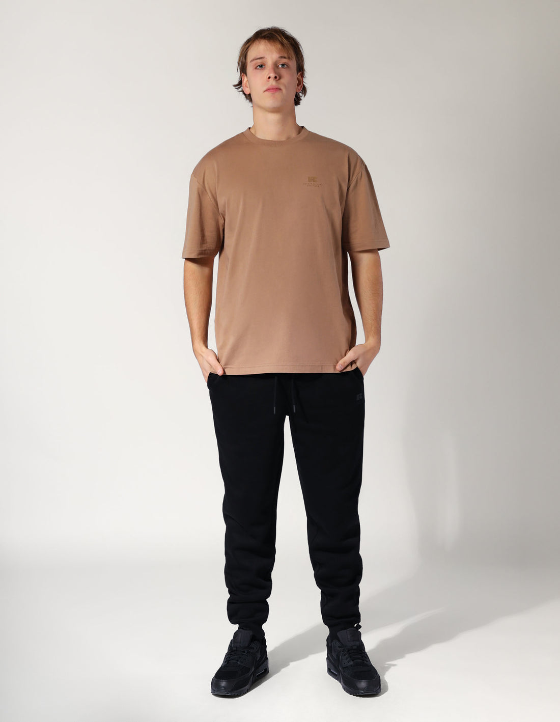 The Brooklyn Oversize Tee is your go-to piece for effortless, relaxed vibes. Cut in a generous oversized fit with a classic ribbed crew neckline, it's designed for maximum comfort whether you're hitting the beach or just kicking back. The distressed baseball arch logo on the chest adds that worn-in, vintage aesthetic. Crafted from 100% cotton jersey, it's breathable and soft against your skin. Available in a warm caramel tone across sizes XS to 3XL, this tee works for everyone.
