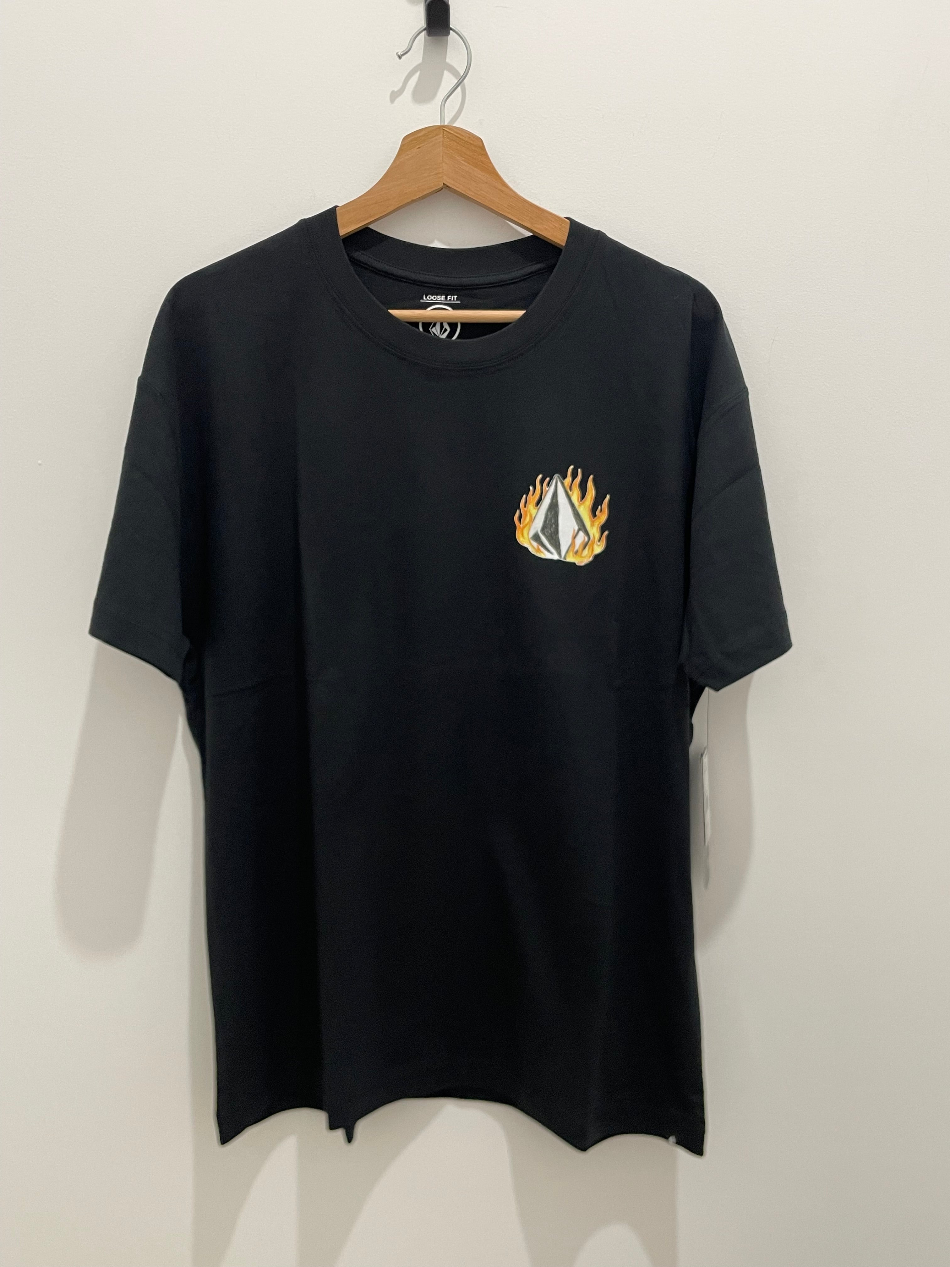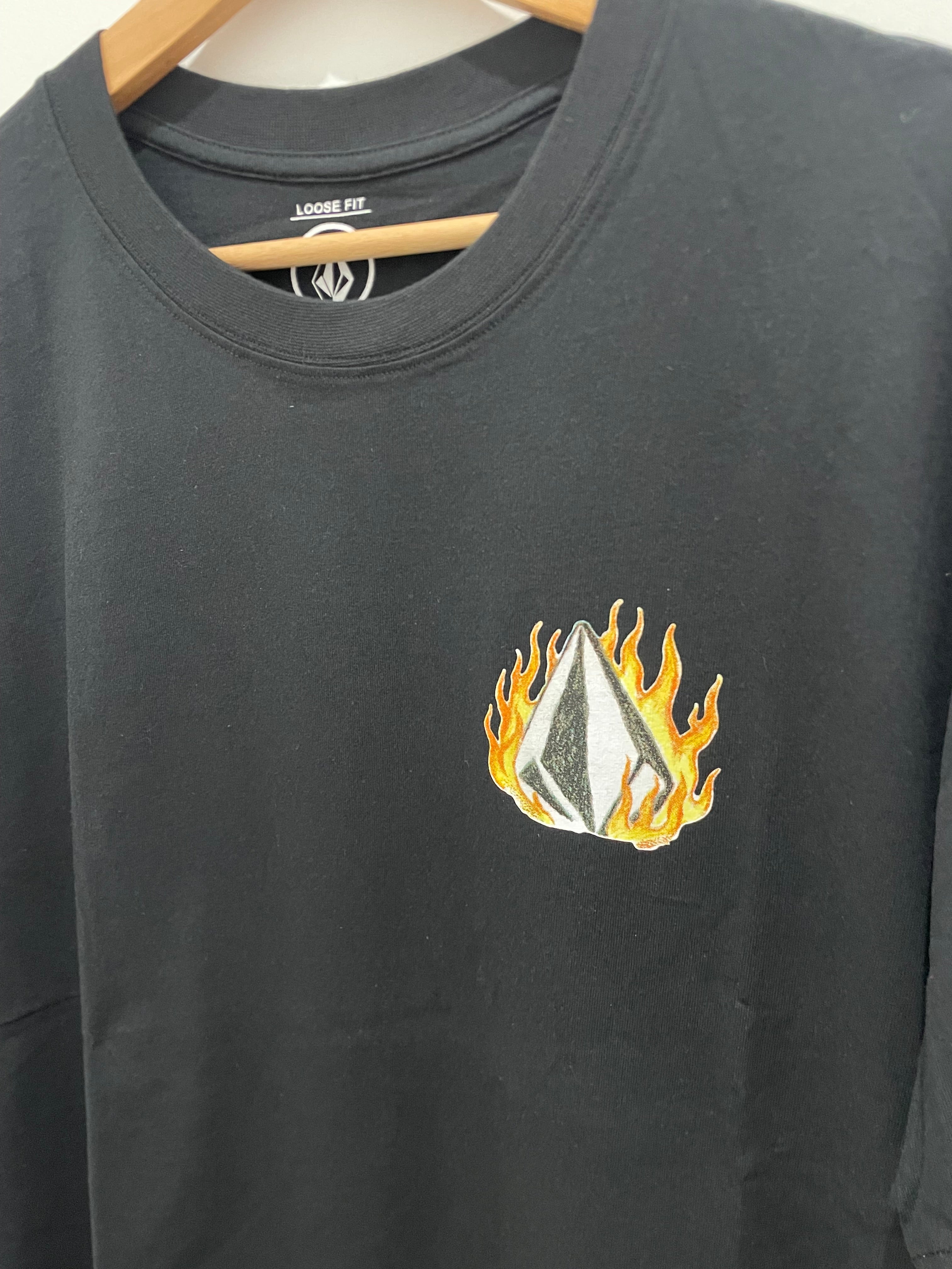 Double Fantasy LSE Tee Catch some heat with this laid-back cotton tee featuring the iconic fire Volcom logo on the front and a killer pattern running down the back. Perfect for hitting the beach or just cruising around town, it's got that effortless vibe that works whether you're waxing your board or grabbing a coffee. Soft, comfortable cotton keeps you cool when the sun's out.