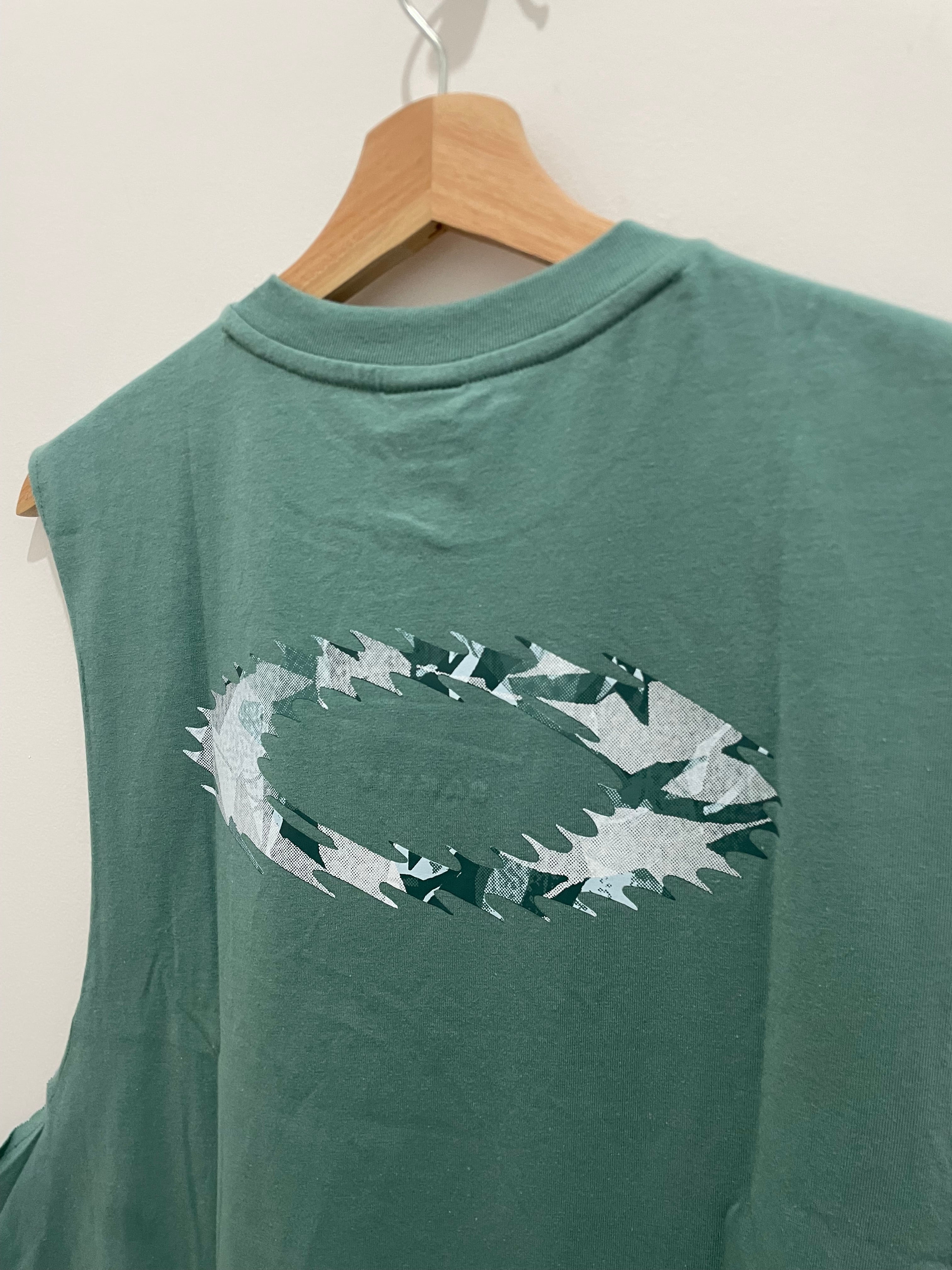 Throw on this classic green muscle tank and catch some rays. Soft cotton keeps you comfortable whether you're heading to the beach or just cruising around town. The cool Oakley circle design on the back adds that iconic touch without trying too hard. Simple, timeless, and ready for whatever the day brings.