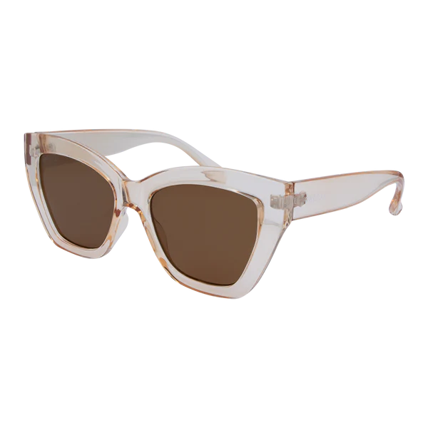 The Winona sunglasses are a classic yet elevated square frame with a gentle cat-eye shape, exuding sophistication and style. The translucent beige color adds a soft, modern touch, while it's UV400 brown lenses offer both protection and a polished, luxe finish to complete the look.