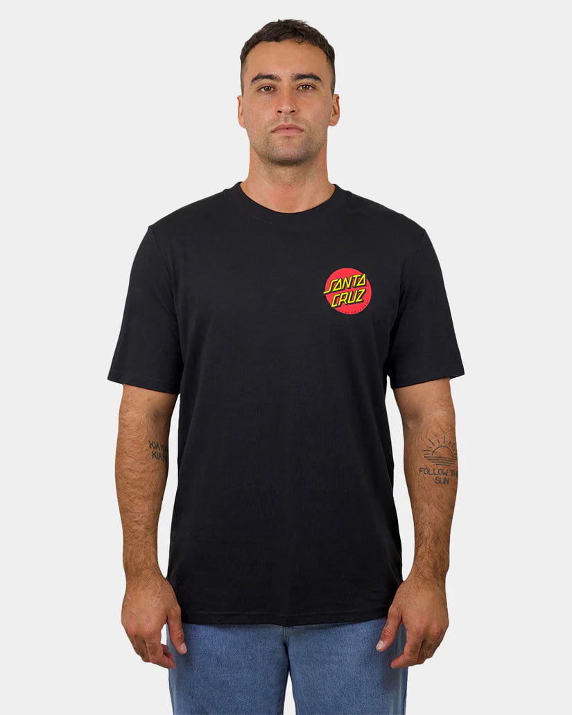 Men's short sleeve Santa Cruz regular fit T-Shirt featuring a screen print of the Classic Dot logo.