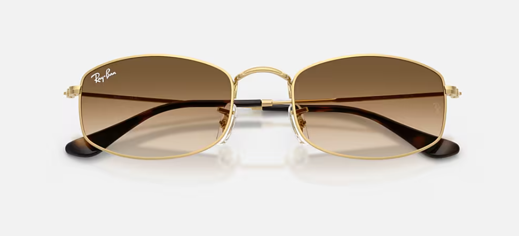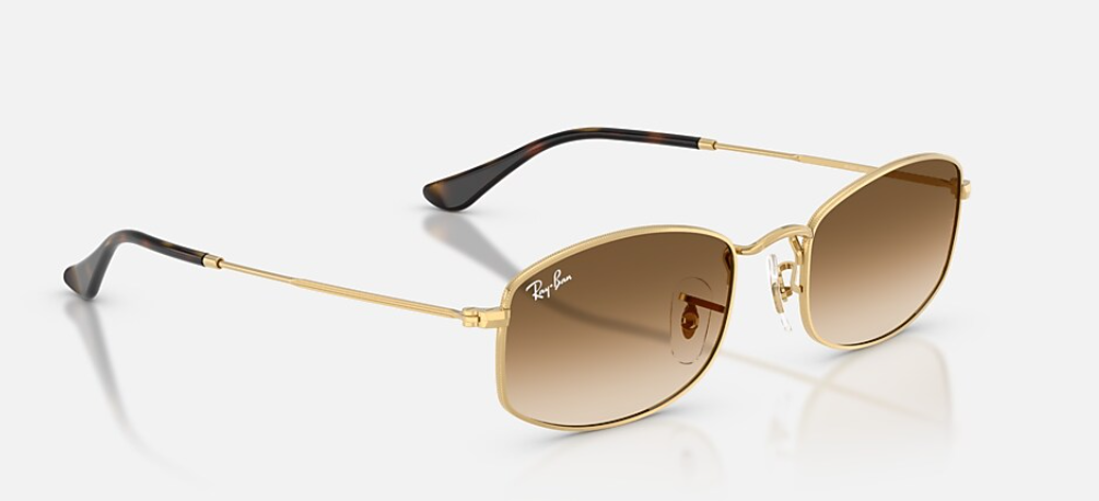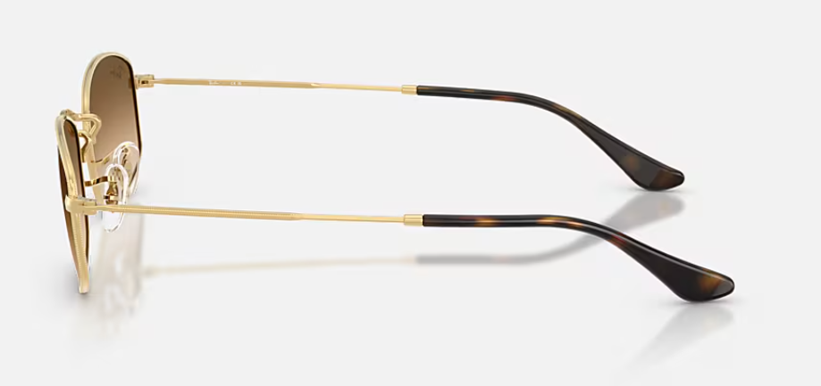 Ray-Ban RB3832 sunglasses are a modern take on the classic aviator style, featuring a metal frame crafted in arista gold and an irregular shape for a contemporary edge. The clear gradient brown lenses offer 100% UV protection to keep you stylish all day long.