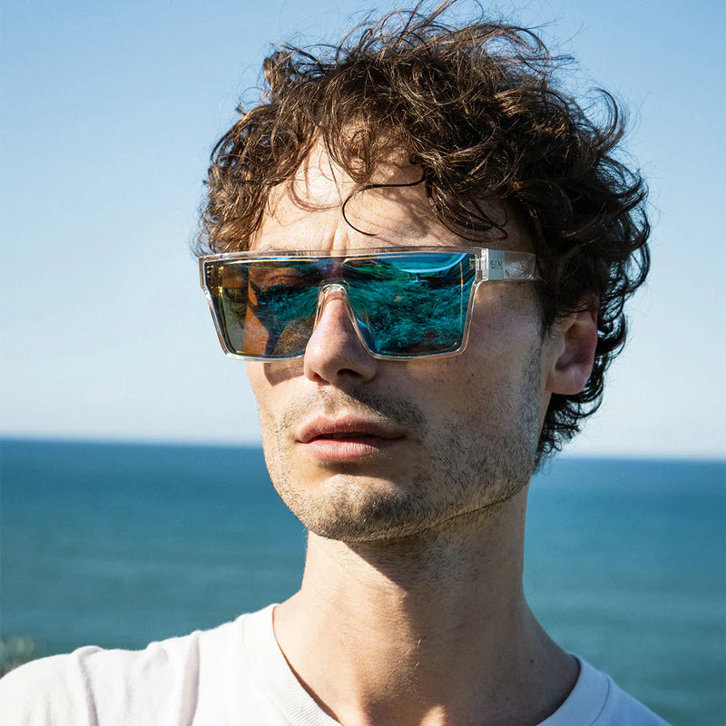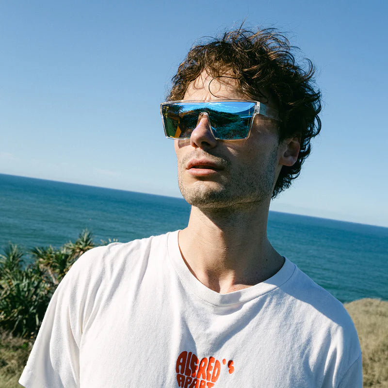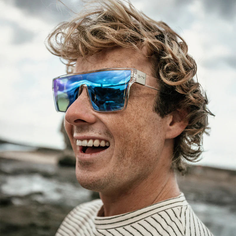 Bold shape. Clear intent. Loose Cannon in Crystal Blue Flash doesn’t play by the rules, it rewrites them. With its sharp square silhouette, flat-top brow, and shield-style polarised lens, this frame is built to steal spotlights and spark chaos in all the right ways.
