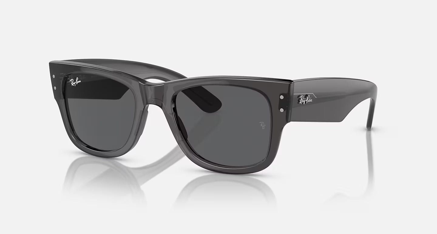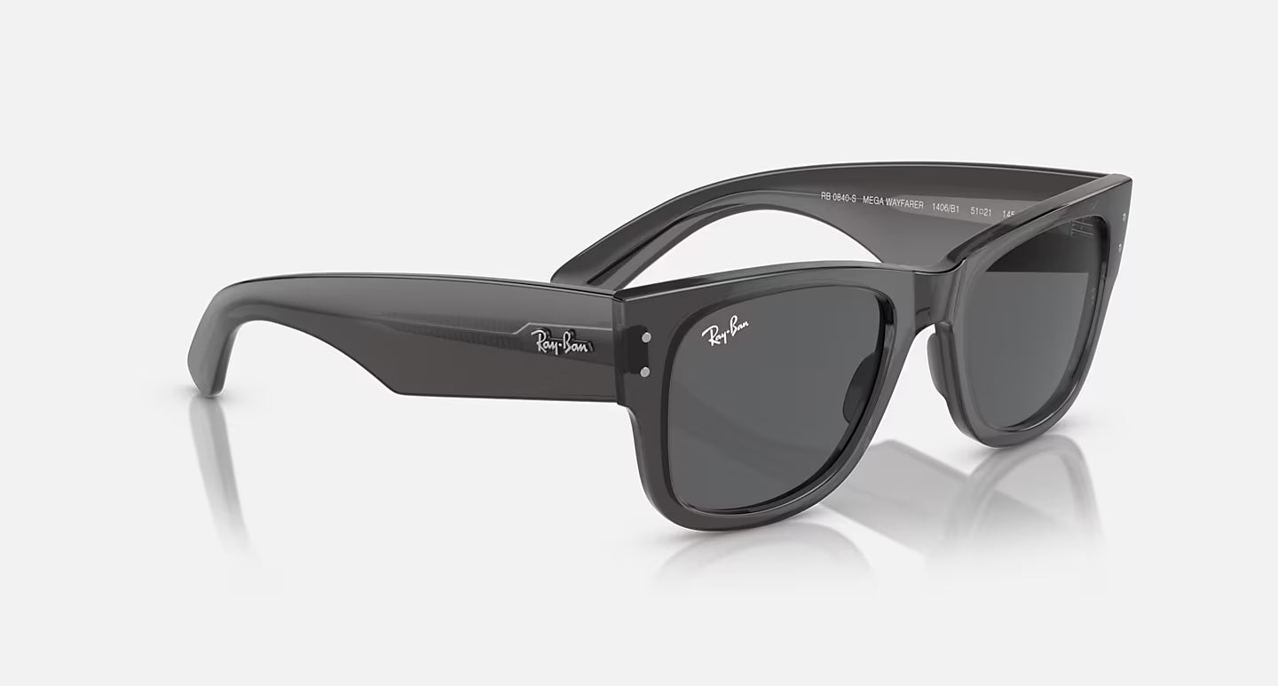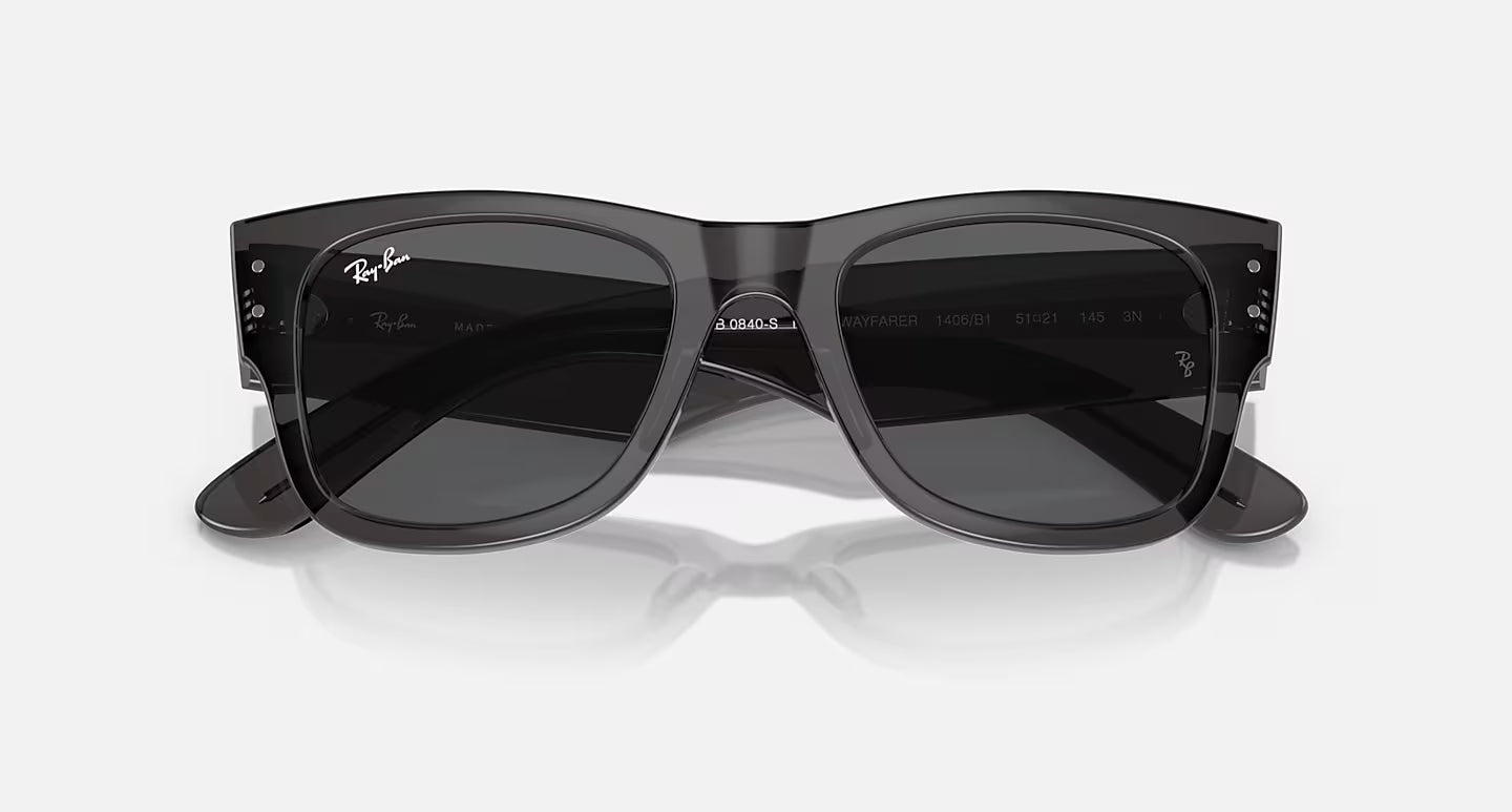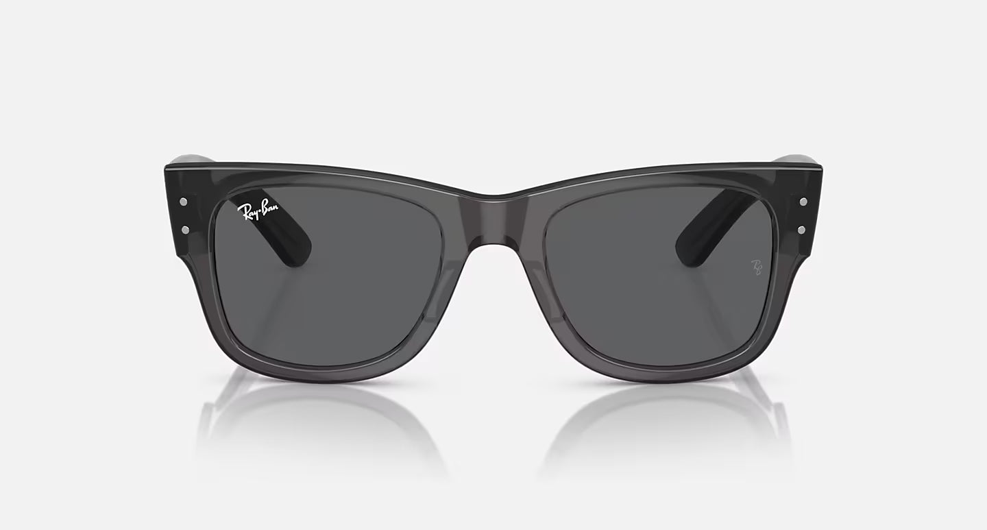 Ray-Ban Mega Wayfarer features an oversized square frame with a polished finish. The transparent black color adds a modern touch to the iconic design, while the solid dark grey lenses provide 100% UV protection. These sunglasses are perfect for making a statement wherever you go.