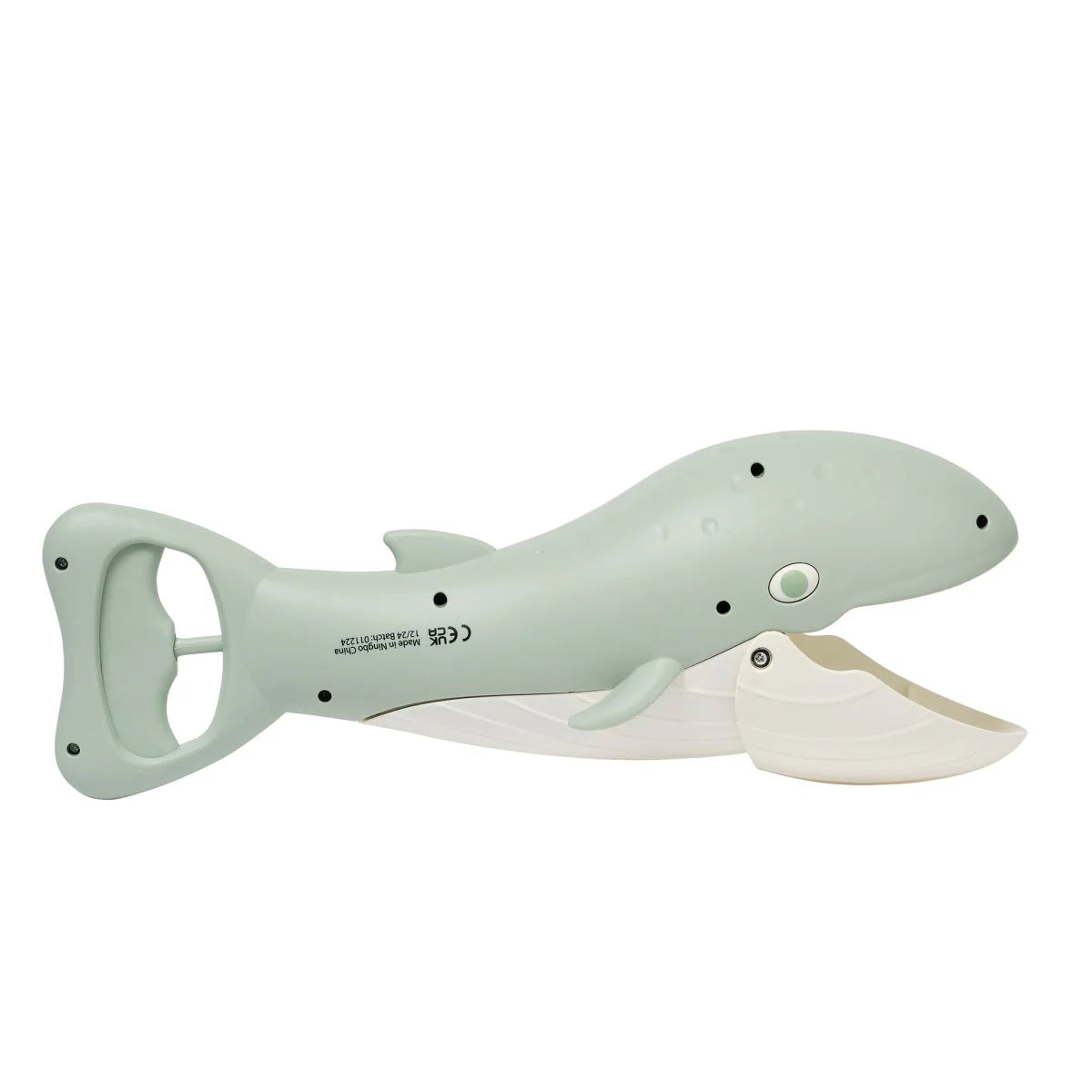 - Spring lever in tail to open and close whale's mouth.