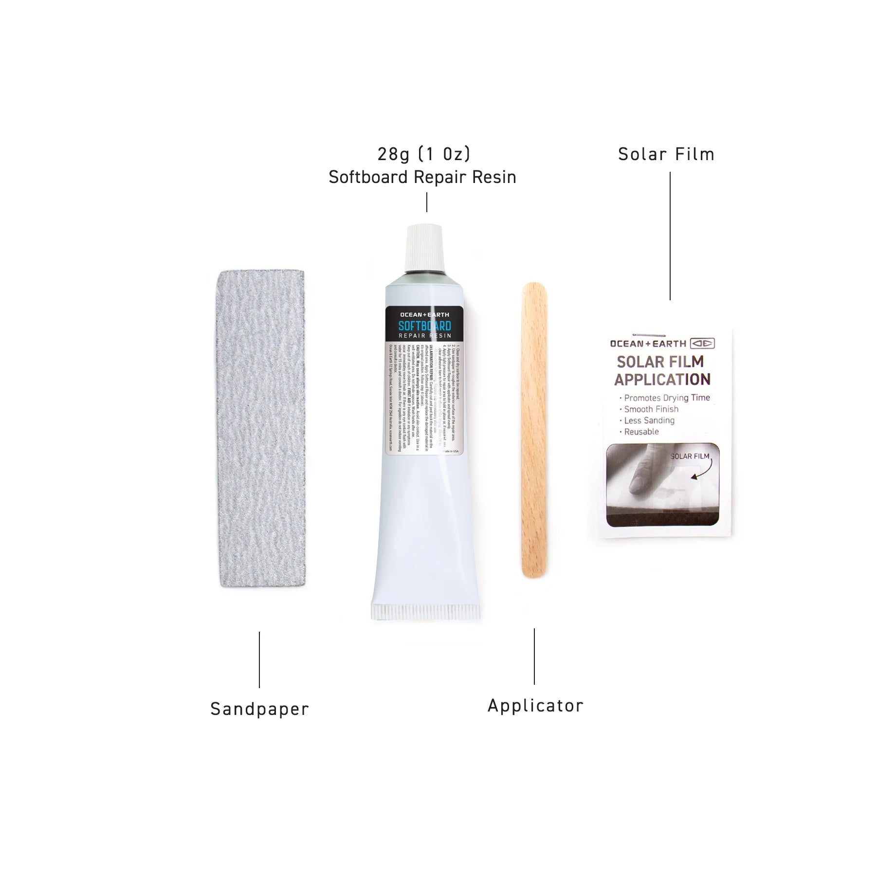 Includes 28g (1oz) tube of clear finish, water resistant soft board repair silicone, applicator and sandpaper for better bonding to surface.