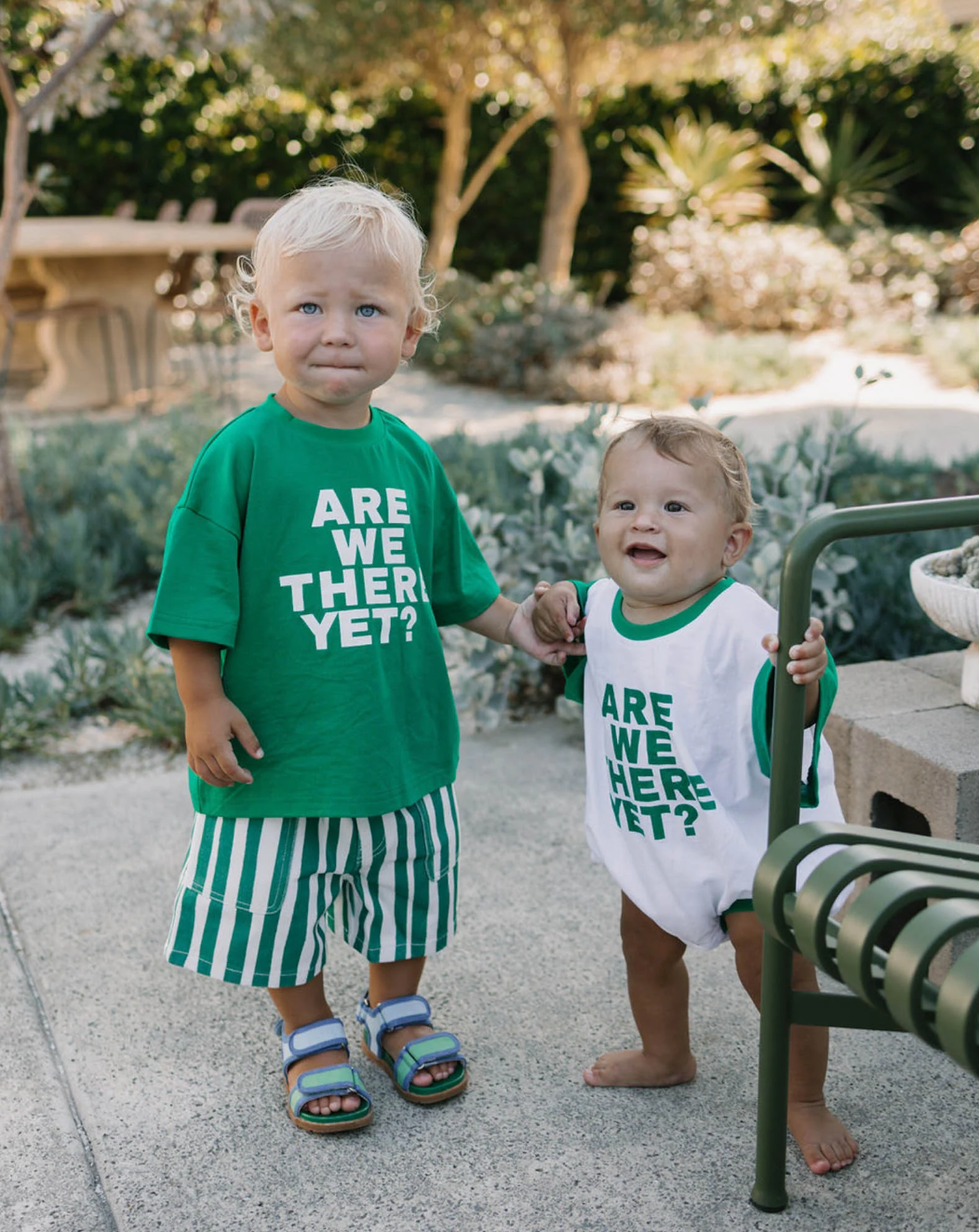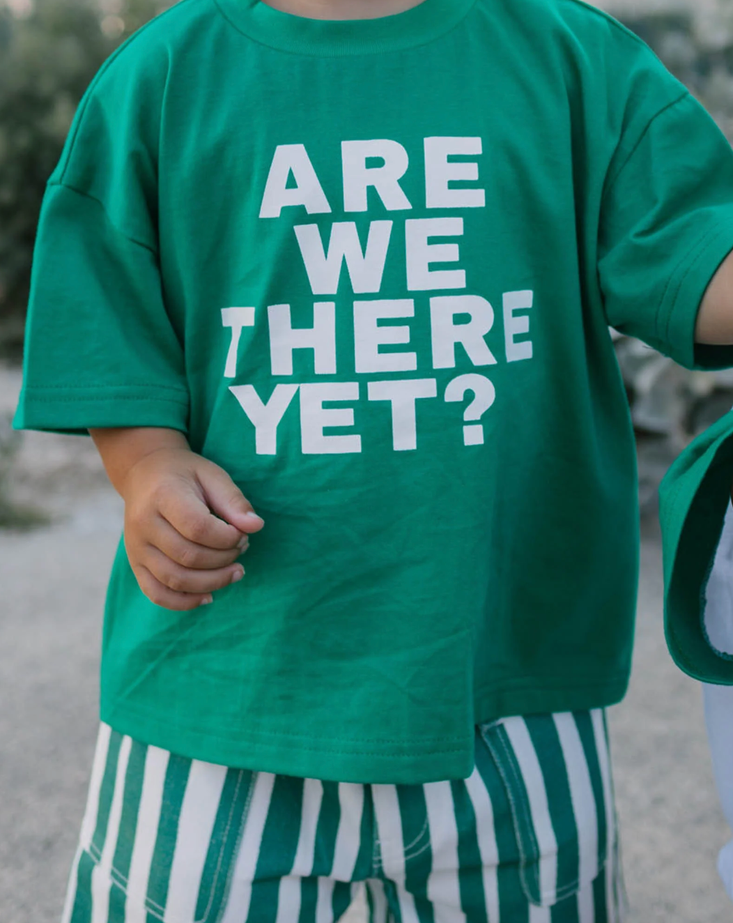 Made for little adventurers (and impatient passengers), the Felix Tee in bold green features the iconic "Are We There Yet?" slogan front and centre. Crafted from soft, breathable cotton jersey, this tee is perfect for road trips, play dates, or just asking the big questions.