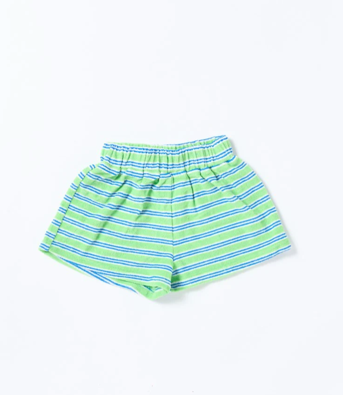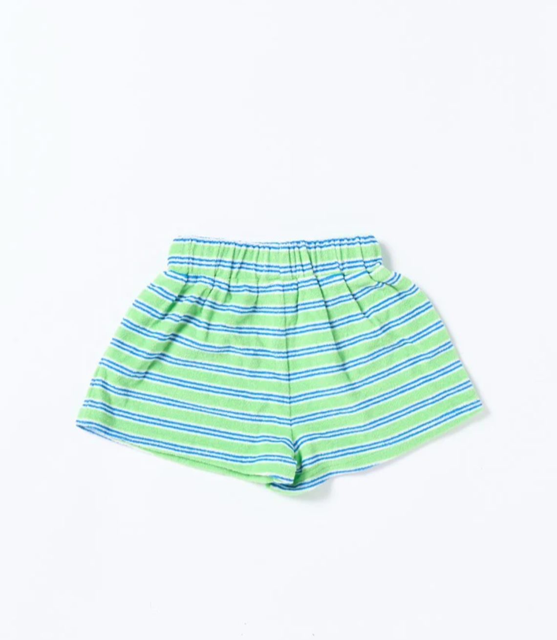 Made for poolside hangs and post-swim snuggles, the Huey Short in Terry Stripe Green is an everyday summer essential. Crafted from soft, absorbent terry towelling with a classic blue-and-white stripe, these relaxed-fit shorts are perfect for playtime or beach days. The elastic waist makes dressing a breeze—just pull on and go!