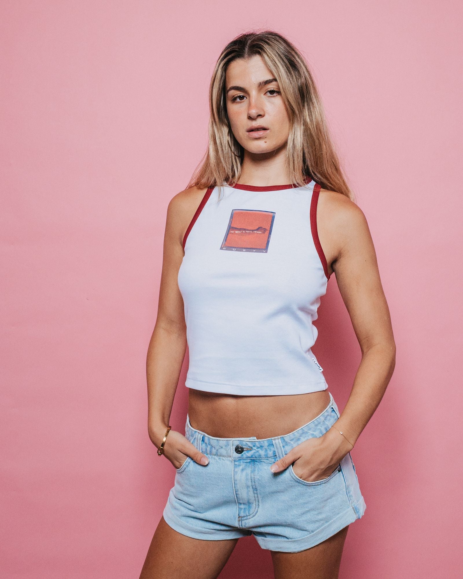 The Shoot It Tank is your go-to piece for effortless summer style. Crafted from 100% cotton jersey, this fitted racer tank delivers comfort that moves with you, whether you're heading to the beach or catching waves. The contrast binding adds a sharp edge to the design, while the front graphic keeps things fresh and on-brand. Simple, clean, and ready for anything.