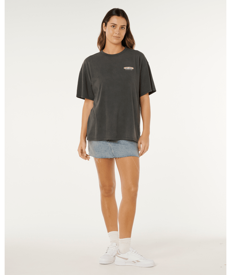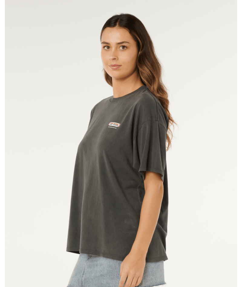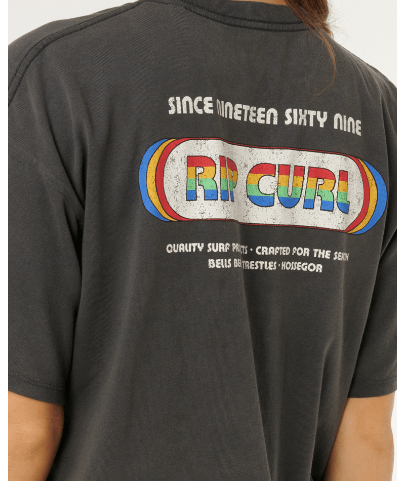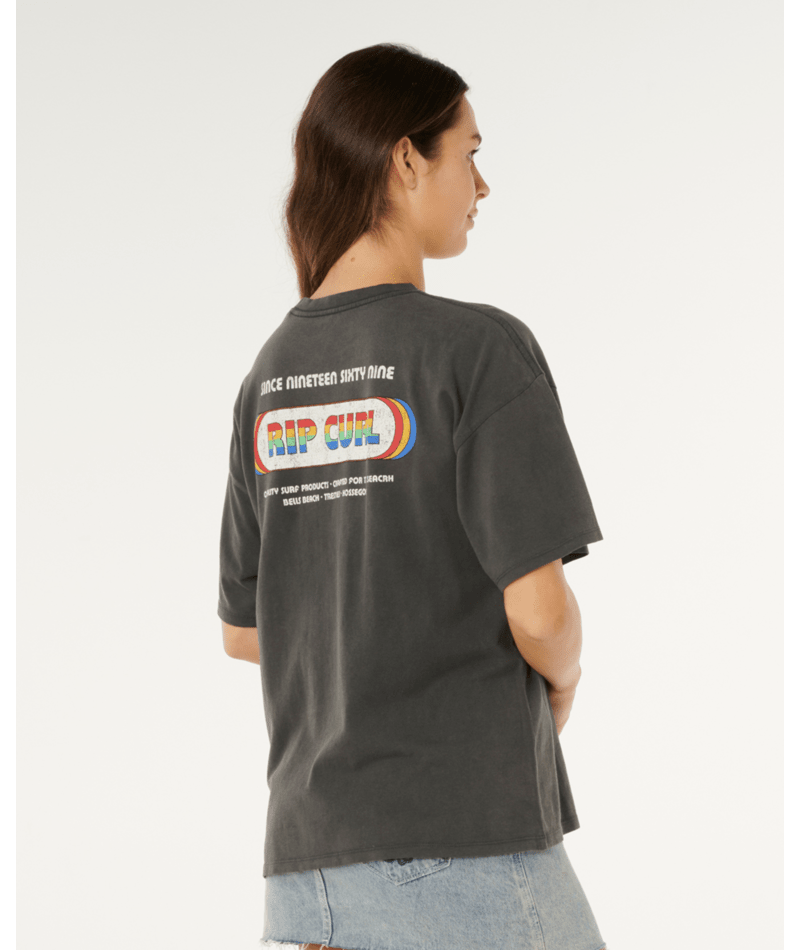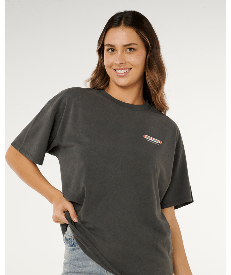 The Surf Revival Heritage Tee combines a heritage fit with garment pigment dye and heavy enzyme wash. Features include front and back prints, inner neck print, and woven flag label for a timeless surf tee.
