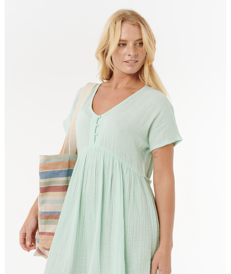 Effortless and airy, the Premium Surf Short Sleeve Dress is crafted from soft cotton double weave gauze. With a relaxed drape, button-front closure, and minimal trims, it's the kind of throw-on piece that works perfectly after a session or out for a barefoot stroll.