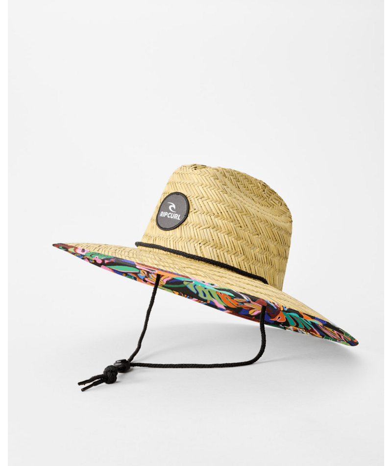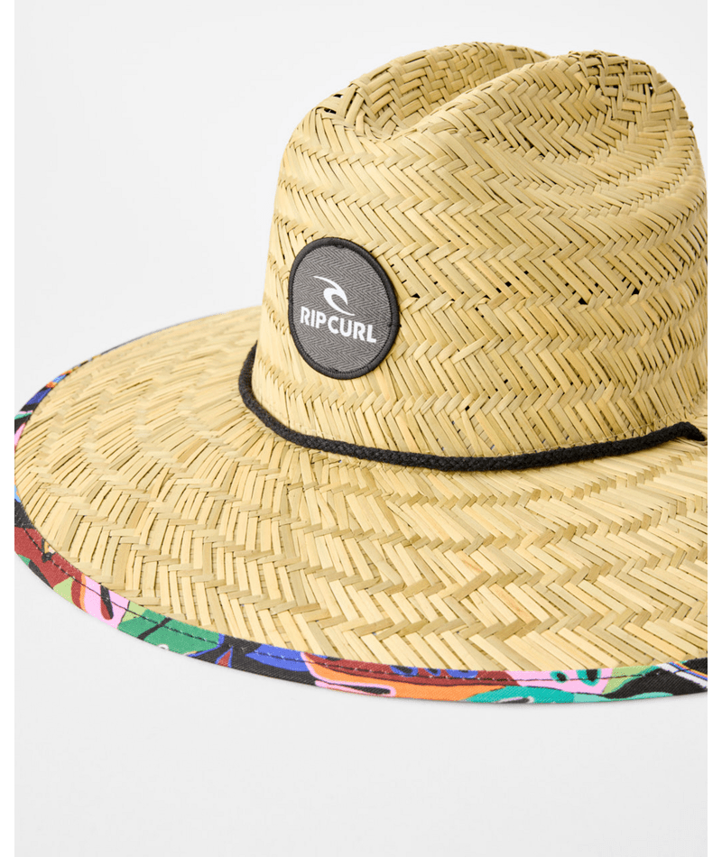 This wide-brimmed sun hat is all about the details. Handcrafted from mixed straw, it comes with a printed brim lining and an adjustable chin strap for the perfect fit. A badge adds a touch of surf-inspired style, while the natural weave ensures you stand out at the beach.
