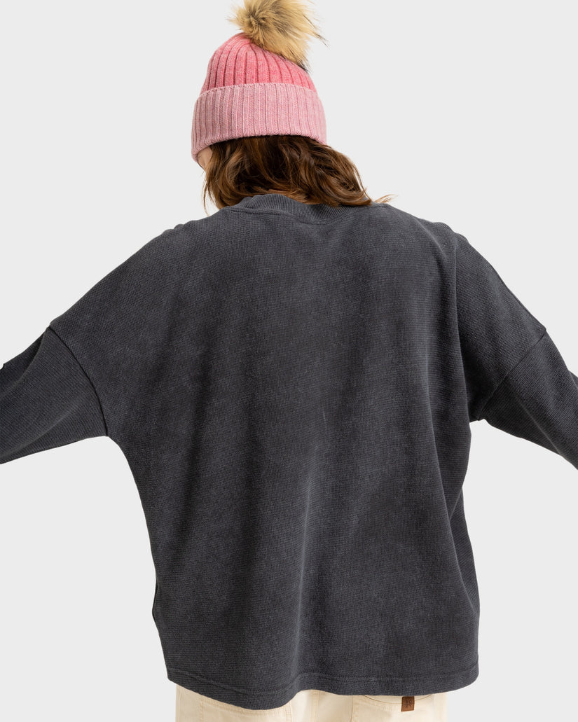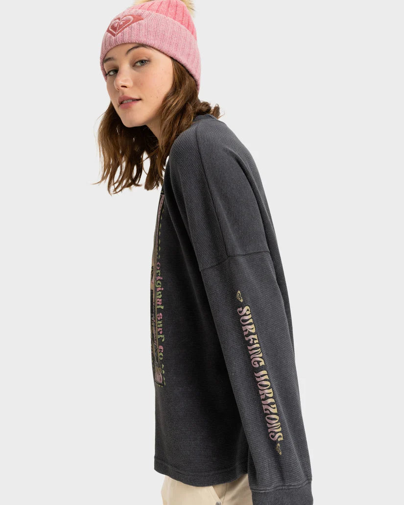 Neck: Crew neckline in rib fabrication Roxy unique artwork at front and sleeve