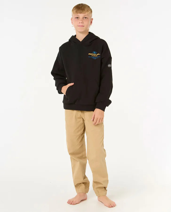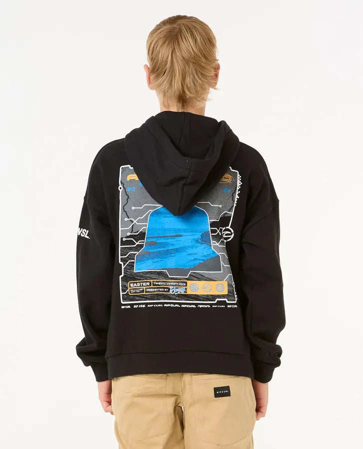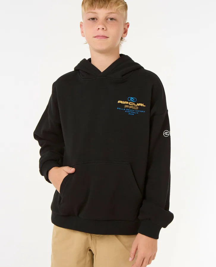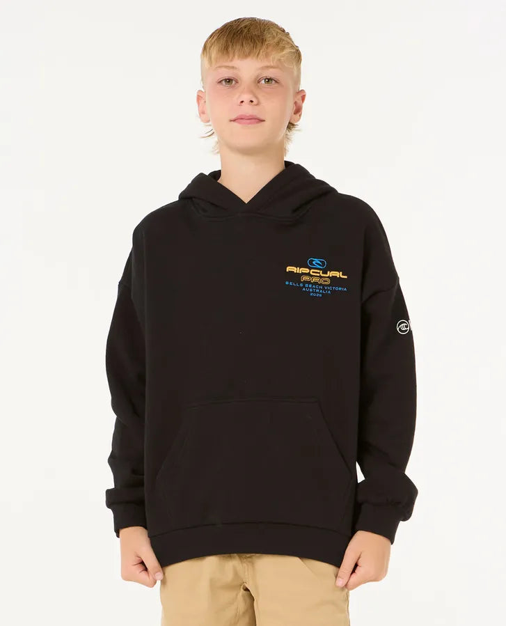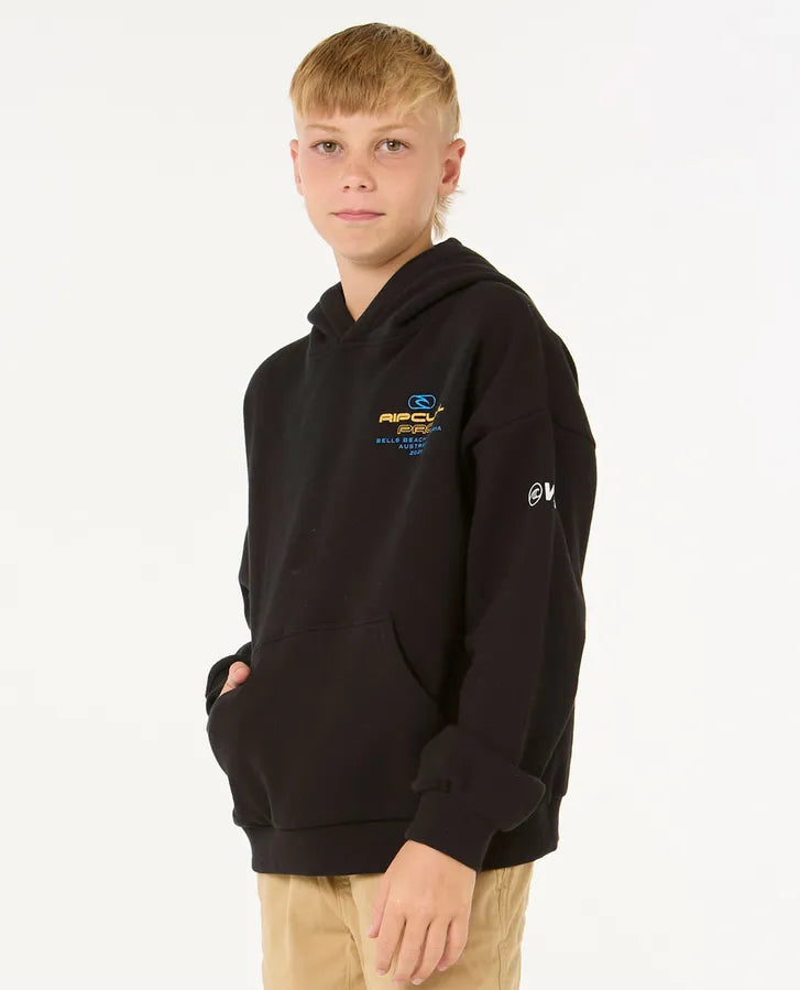 The Rip Curl Pro 25 Hood for kids combines an original fit with a kanga pocket, front and back prints, and a woven label. Made from cotton-poly fleece, it’s a comfy, stylish hoodie for the next generation of surfers.