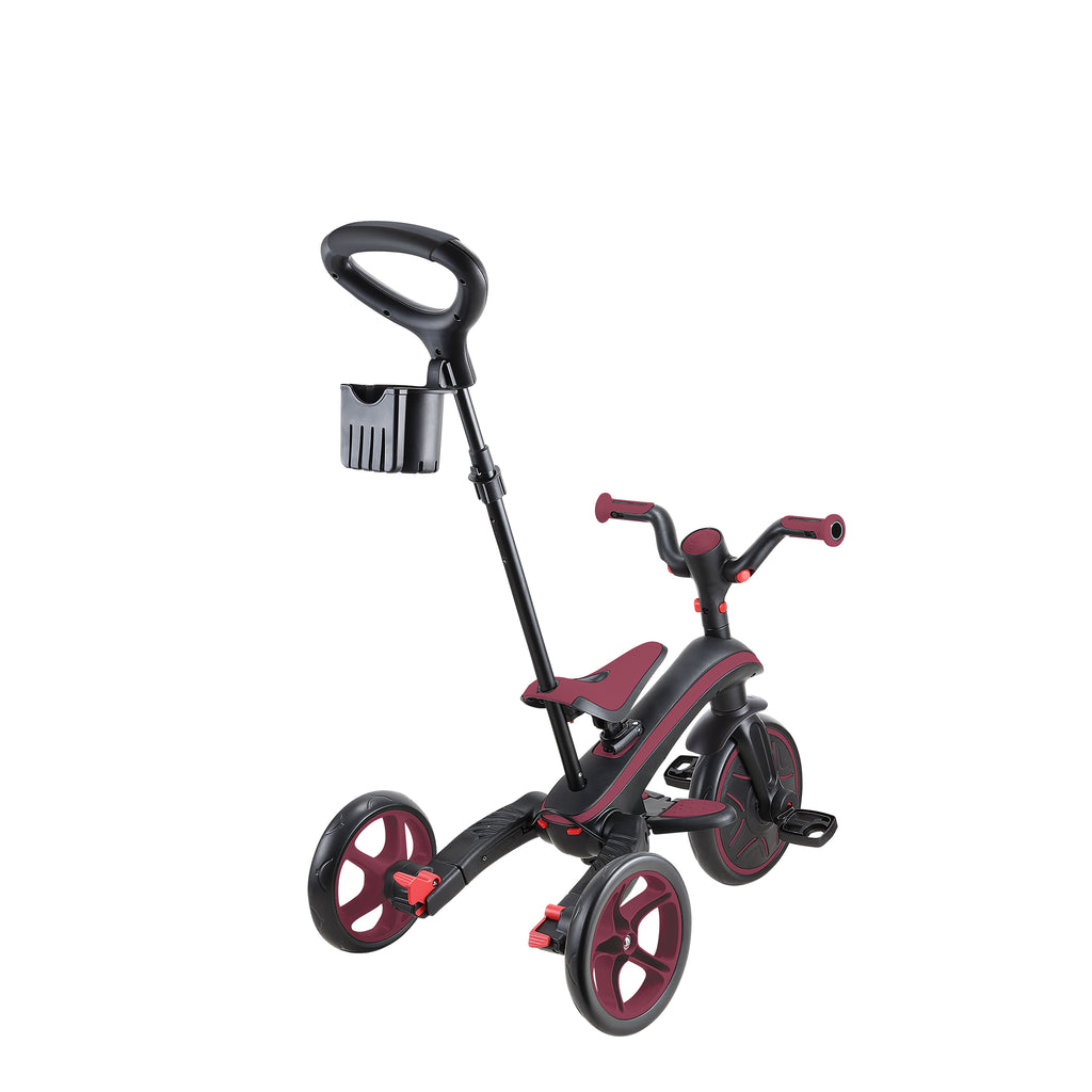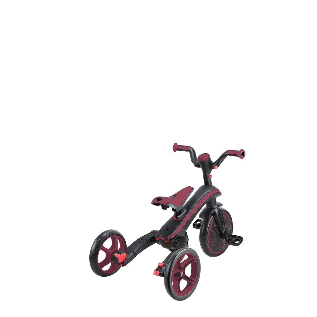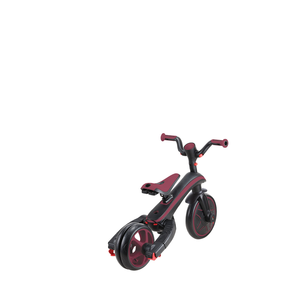 EXPLORER TRIKE FOLDABLE 4in1 offers 4 ways to play—infant trike (10-36M), guided trike (18-36M), training trike (24-36M), and balance bike (2-5Y)—and conveniently transforms alongside your child’s development.