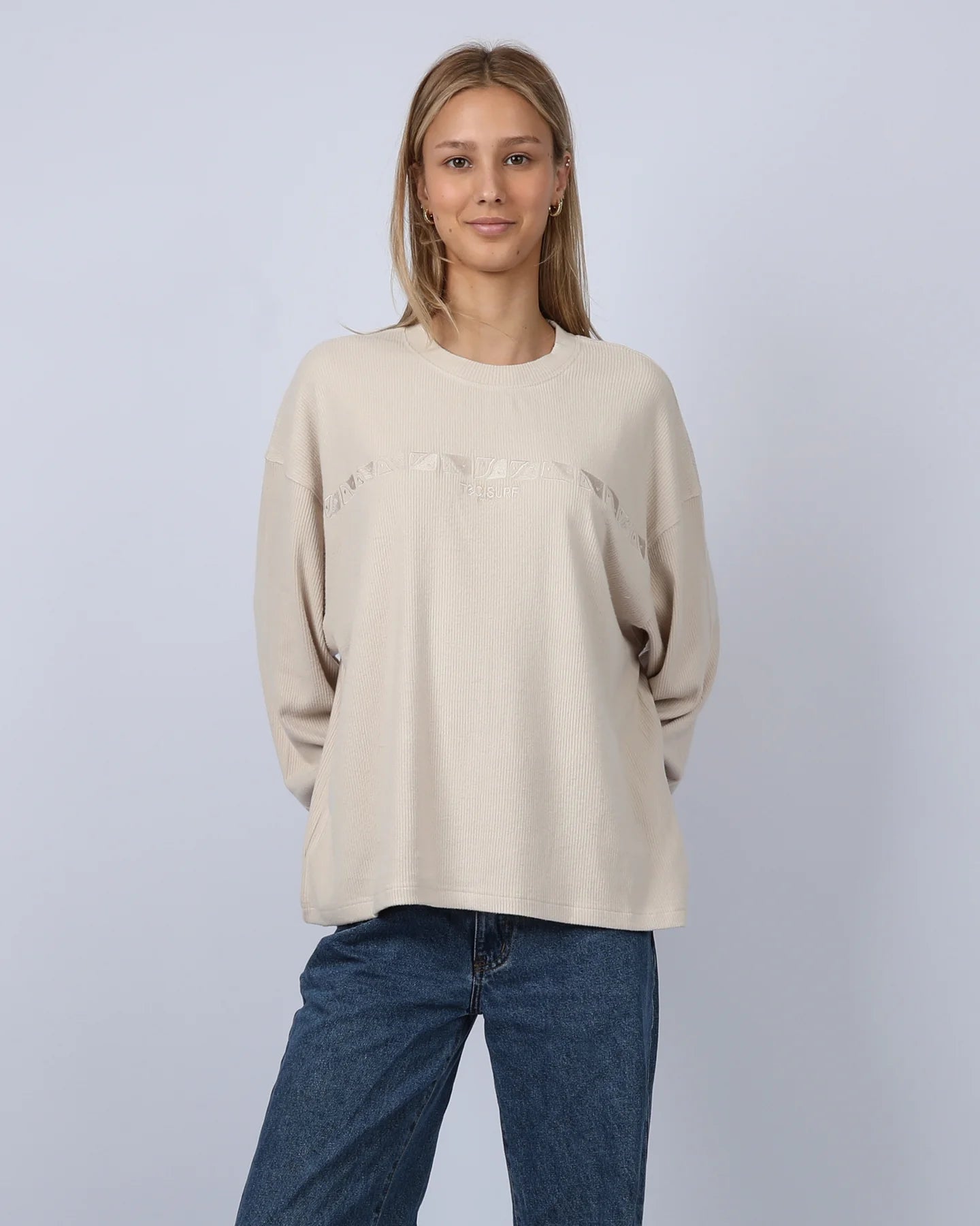 The Horizon Rib Crew is the ultimate expression of effortless comfort. Crafted from a premium 300 GSM Brushed Rib Jersey, it strikes the perfect balance between cozy warmth and a lightweight, breathable feel. The texture is incredibly soft against the skin, making it the piece you’ll reach for the second you get home, or the one you’ll wear all day when getting dressed feels like too much effort.