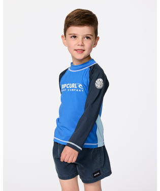 Designed for active little surfers, this performance-fit rash vest offers UPF 50+ sun protection, flatlock stitching, and an elastic boardshort loop for a secure fit. Heat transfer prints add style on and off the water.