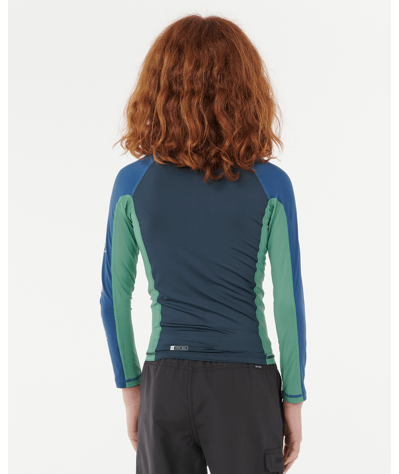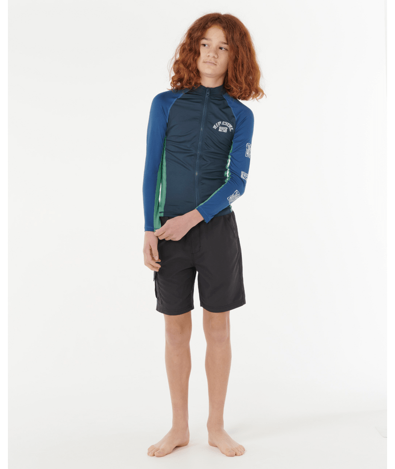 This performance fit rash vest features a full zip, flatlock seams, and UPF 50+ sun protection. Front and sleeve heat transfer prints make the Tropic Daze Zip Through Vest a go-to layer for active days in the lineup.