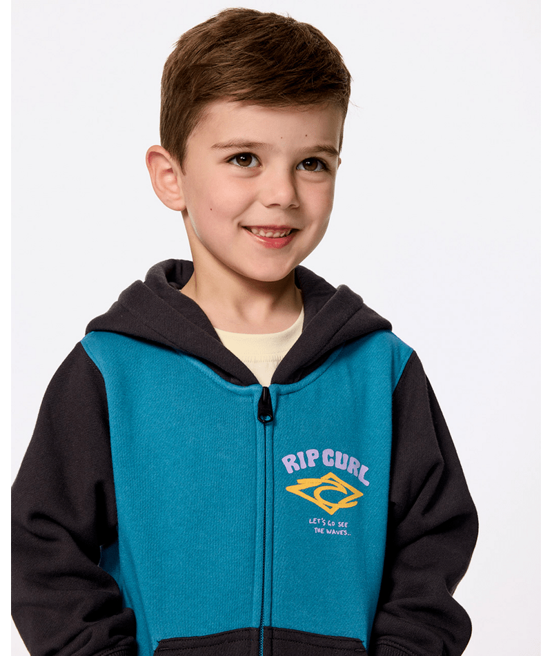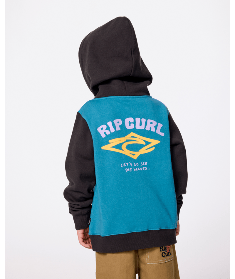 Warm up in the Wave Dayz Zip Through Fleece, a standard fit fleece with puff print detail, front and back graphics, and a handy front pocket.